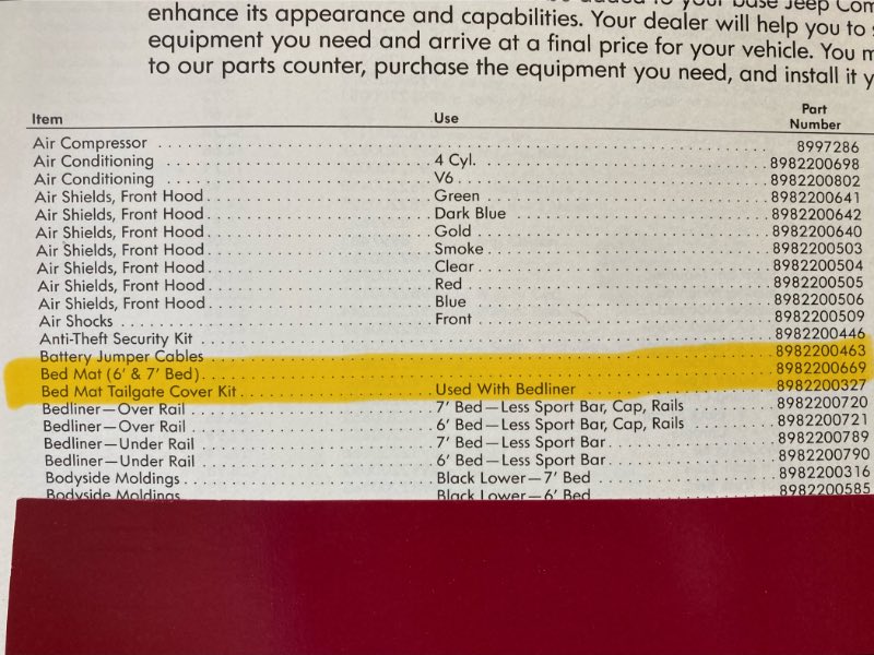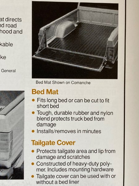 Here is a pic of the OEM one cut down for the SWB on top of the LWB one, notice the ribs of the LWB are rounded and don’t go to the edge. And from the ‘88 and ‘91 accessory catalogs, respectively.