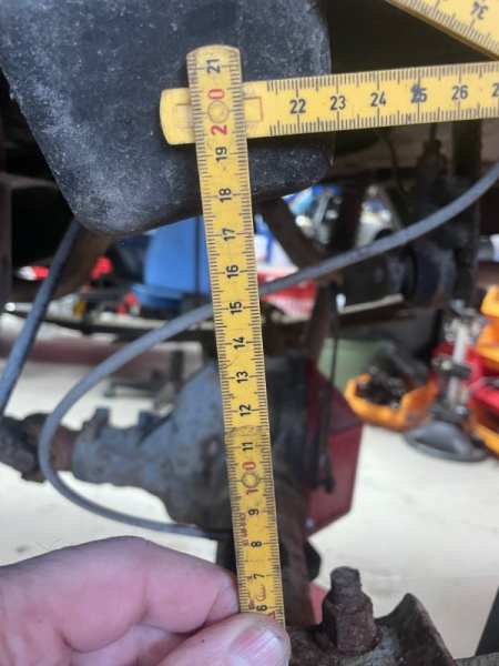 Hi, My name is Caspar and I live in Norway, a small country in Scandinavia with only about 6 million people. I am currently rebuilding a Cherokee XJ with an LS engine, and I have also recently acquired a short-bed 4x4 MJ. There are only 14 of them in Norway. I ordered a list from the DMV and called all the owners. The vehicle I bought has been unregistered for five years, so it has to go through a technical inspection before I can register it again. During this inspection, I received a remark stating that the vehicle appears to be equipped with a lift kit. What I am wondering is whether anyone can help me find the stock measurement from the rear leaf spring up to the rubber bump stop on the frame. On my vehicle this distance is 18 cm, which I believe is more than stock.